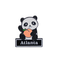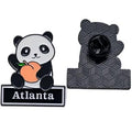 A sweet tribute to Atlanta and the Peach State, featuring a Peach Panda enamel pin paired with a cozy knitted tote bag.