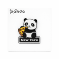 Cute New York pizza panda pin with a secure metal back stopper.