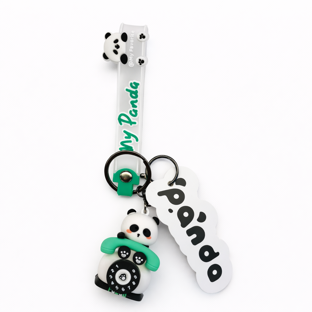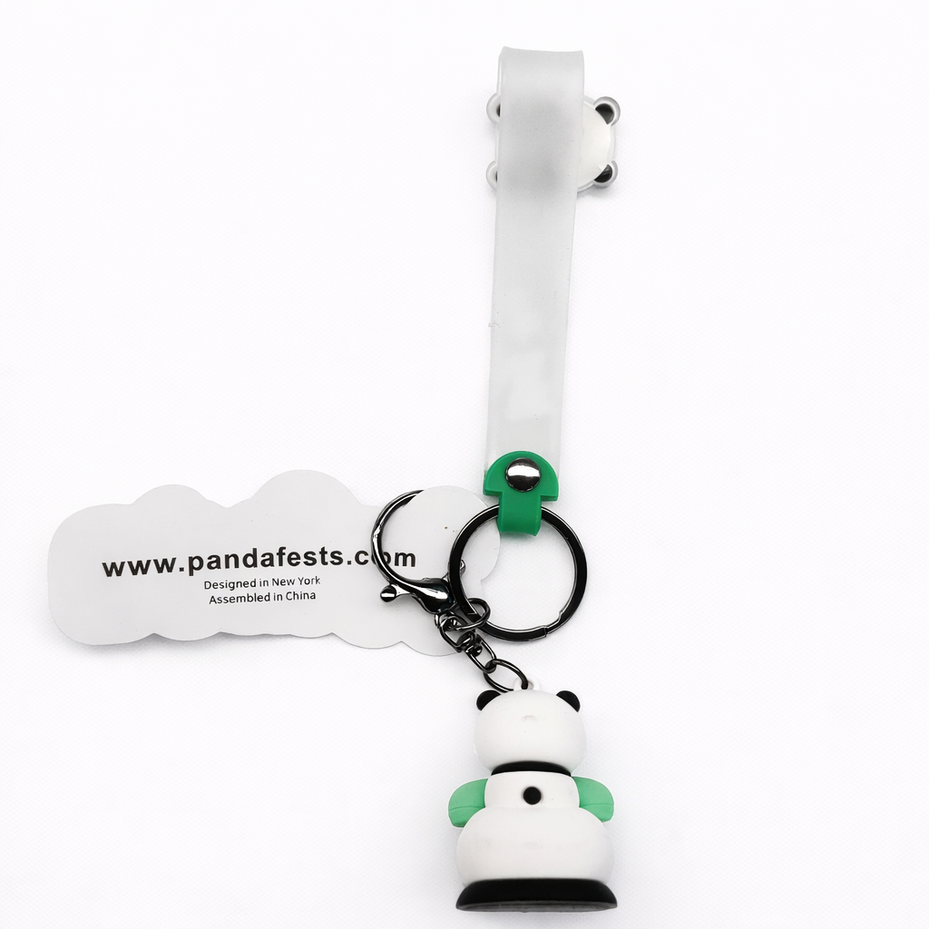 Fun panda rubber keychains with rotating, movable details like a spinning dial or propeller.